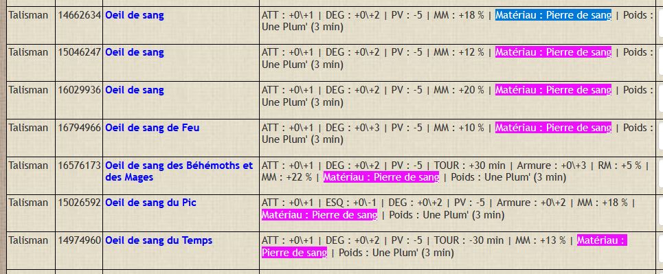 Je remarque que les objets en Pierre de Sang ne sont pas recyclables avec le service en tanière.