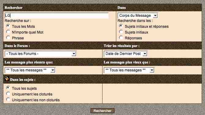 Par contre, il me semble qu'il ne faut pas mettre de mots communs dans la recherche, sinon il n'y a pas de résultat.