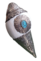 Il attrapas ça Conques et Souffla le plus fort possible ( La légende raconte que des flammes jaillissait du coquillage ) .