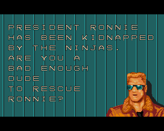 Précision pour ceux qui ne connaissent pas, on dirige le gars en marcel noir et non pas le ninja rouge. Personnellement la confusion me paraissait impossible mais c'est surement dû aux centaines d'heures que j'ai passé sur shinobi en arcade et en émulation