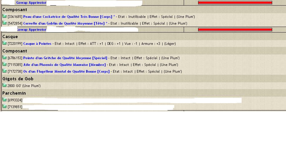 Autant que le type de truc qu'ils portent ( composants / parchemin / etc ), et le nom pareil ça serait bien.