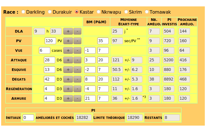 Sinon 36 dés d'attaque ça laisse peu en défense. Quitte à faire dans le bourrin qui fait mal, que pensez vous de ce profil ? (cf image, je suis une feignasse).