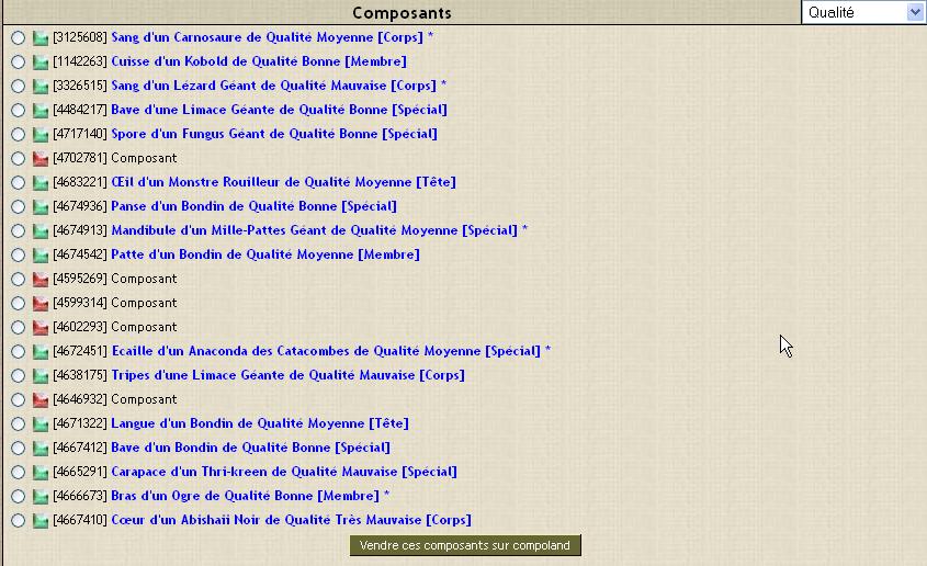 Voici mes composants triés par qualité, on voit tout de suite que ça ne fonctionne pas.
