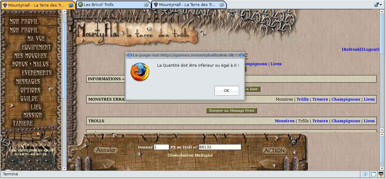 • Si le Bug concerne un Trõll, un objet, un monstre, un lieu, une guilde en particulier, signalez son numéro .
