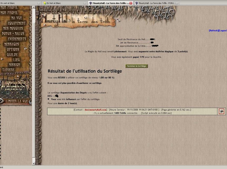 J'ai fait une ADD et au moment de m'inscrire le résultat de mon sort, il a d'abord marqué la fin du message (que le hall m'avait résisté, ou pas, je ne sais plus....) et que ça me mettait +X en dégat, puis le bouton "terminer l'action"