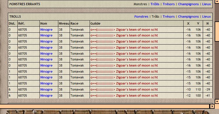 Je ne vois plus rien, juste un troll, qui ne se trouve pas sur la case, et son nom apparait plusieurs fois, et même sur plusieurs cases différentes. Je précise qu'il y a mon groupe de chasse sur la case.