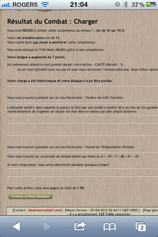 Voici ce que j'ai reçu comme évènement. J'ai fini sur la tanière du troll.
