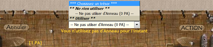 En fait on ne me propose que de déséquiper un anneau (que je ne porte pas). Evidemment si je clique sur "Action", ça me dit que j'ai bien déséquipé mon anneau, et ça ne me coûte pas de PA.