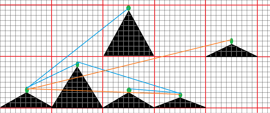 on voit que le troll situé sur la montagne en haut voit le troll complètement a gauche en bas, alors que le troll situé sur la colline juste en dessous de lui ne le voit pas (à cause de la montagne située dans la 2e case à gauche).