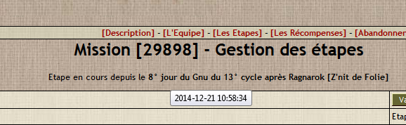 Je ne suis branché sur aucun déambulateur extérieur pour me tenir le maul et me dire quoi faire et sur quoi taper mais j'ai le même effet que R` au même endroit sur la date des gestions d'étapes de missions. Si ça peut aider... (sous IE11)