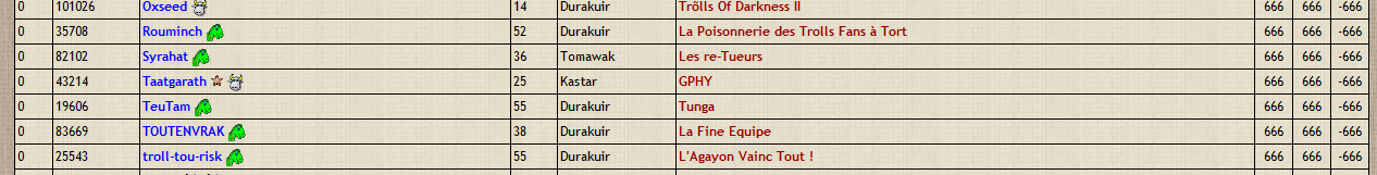 Les participants du Pogo 2009 Taggués !!Afin d'aider les participants au pogo 2009, un nouveau fichier de tags de trolls est disponible. Vous pourrez donc voir à quoi ressemblent les lapins blancs et les pères N'oyëls au premier coup d'œil. Il suffit d'aller dans Options, pack graphique et de choisir le bon tags de trolls.