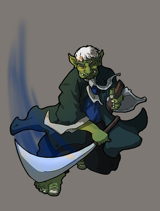 en fait je kiifferais bien un truc mixé troll avec l'esprit zatoichi tendance Kitano donc blond, habits trad japonais, et canne avec sabre planqué...