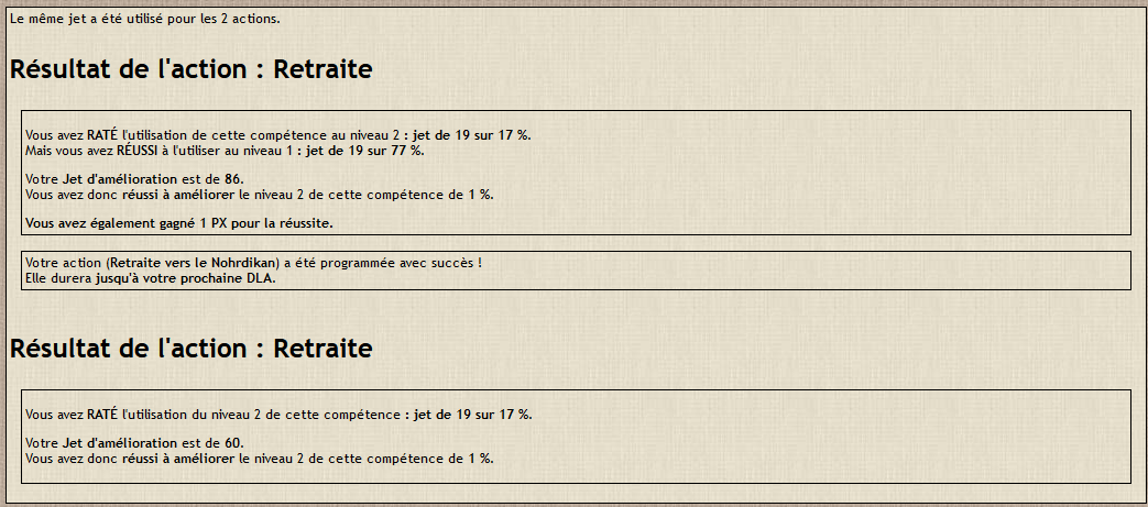 Le seul doute que j'ai est de savoir si ton 2e essai, première compétence aurait dû améliorer le niveau 1