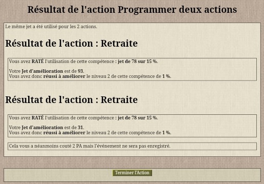 RAPPEL : En "Programmer 2 actions", il faut une réussite pour améliorer.