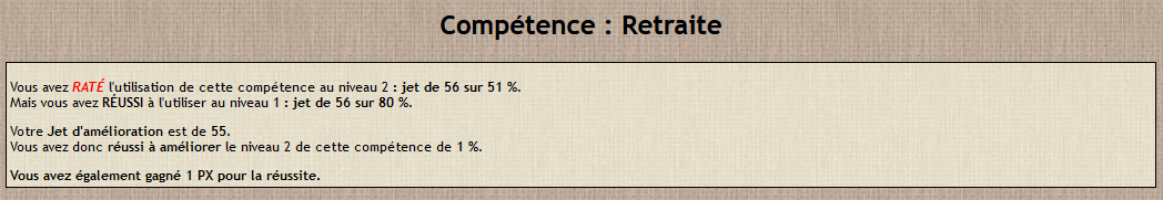 A moins que la règle ait changé, je n'aurais pas du avoir d'amélio sur un raté après 50% de maitrise.